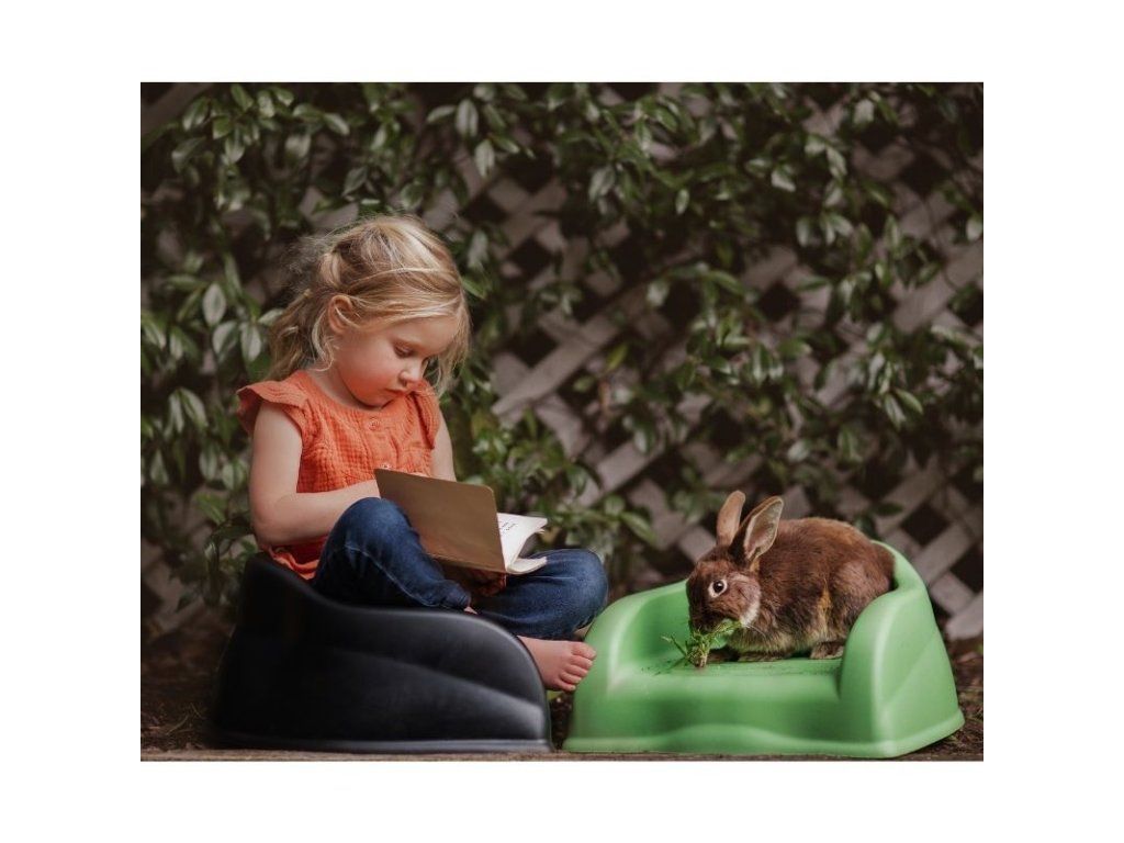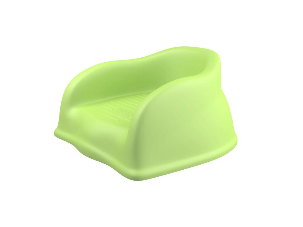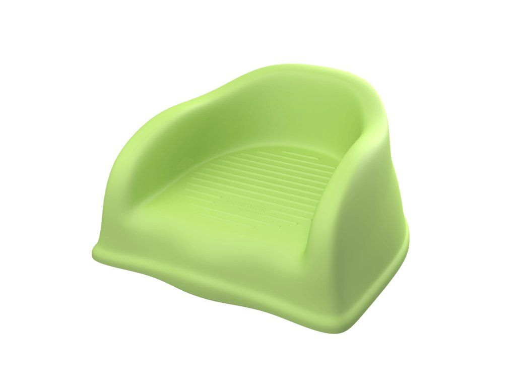 - Stabilní konstrukce bez nutnosti popruhů – sedák zůstává pevně na místě díky promyšlenému tvaru při zatížení dítětem