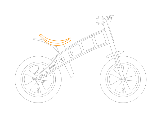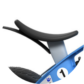 - Tvar a povrch sedla zajišťuje, že dítě při jízdě z kopce z odrážedla nesklouzne (na rozdíl od běžných sedel používaných na jiných odrážedlech nebo kolech s postranními kolečky).